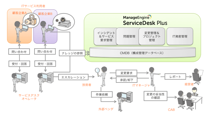 社内のITサービスマネジメント/サービスデスク ServiceDesk Plus 利用イメージ利用用途