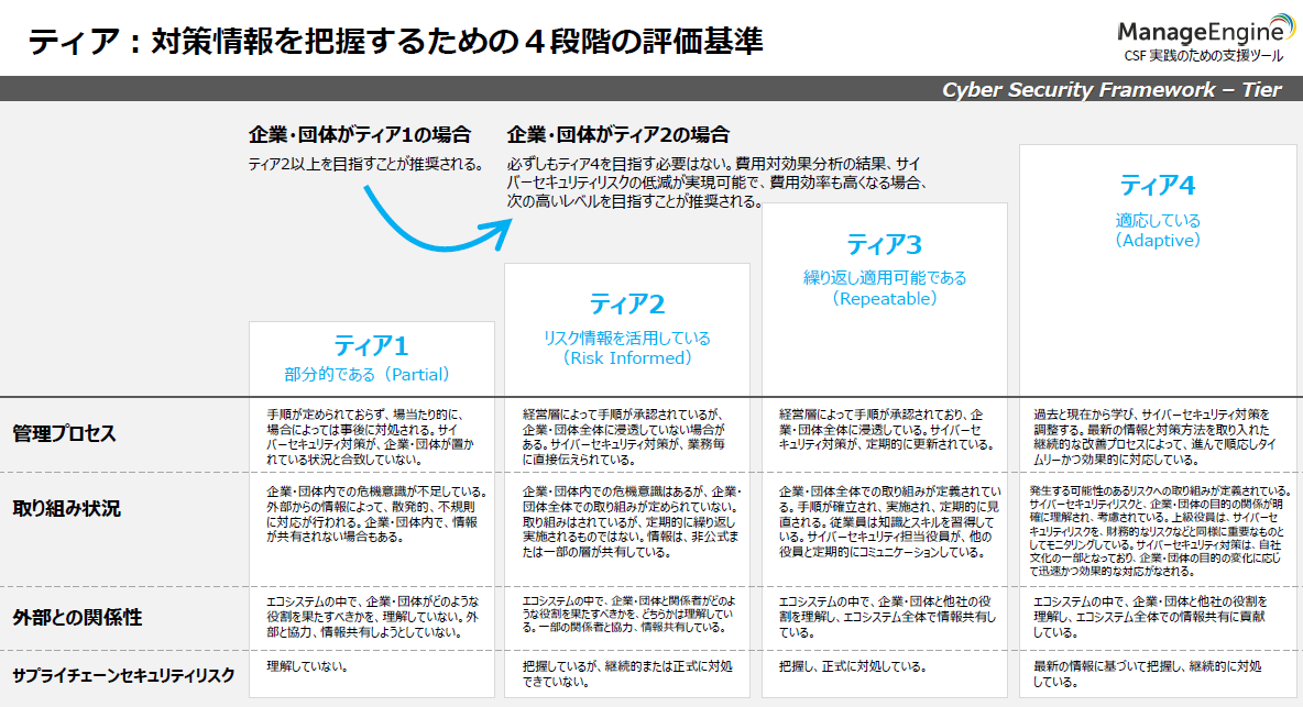 - 2.ティア(Tier):対策状況を数値化し、組織を評価する基準