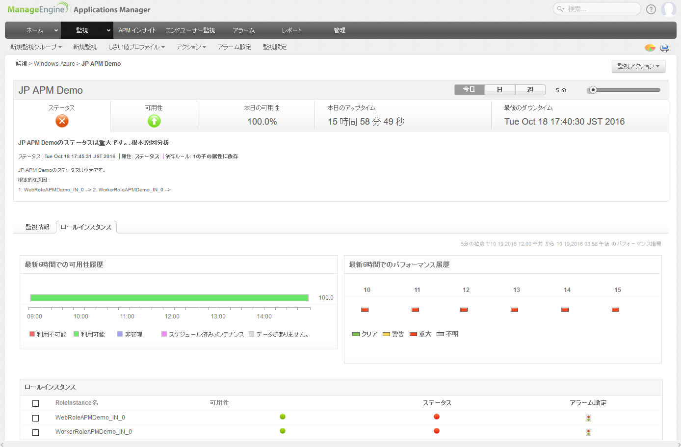 - ロールインスタンスのオフライン、応答しないなどの重要ステータスの監視