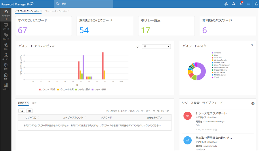 Password Manager Proは、特権IDのパスワードを安全かつ一元的に管理し、ストロングパスワード利用の徹底、 パスワードの定期的な変更、パスワードに対するユーザーアクセスの制御、パスワード管理のワークフローなどを自動化し、組織のセキュリティ強化を支援します。また、ユーザーの操作を動画として記録でき、内部統制の証跡として役立ちます。公共・金融期間を中心に世界中で3000社以上の導入実績があるWebベースの特権ID管理ソフトウェアです。