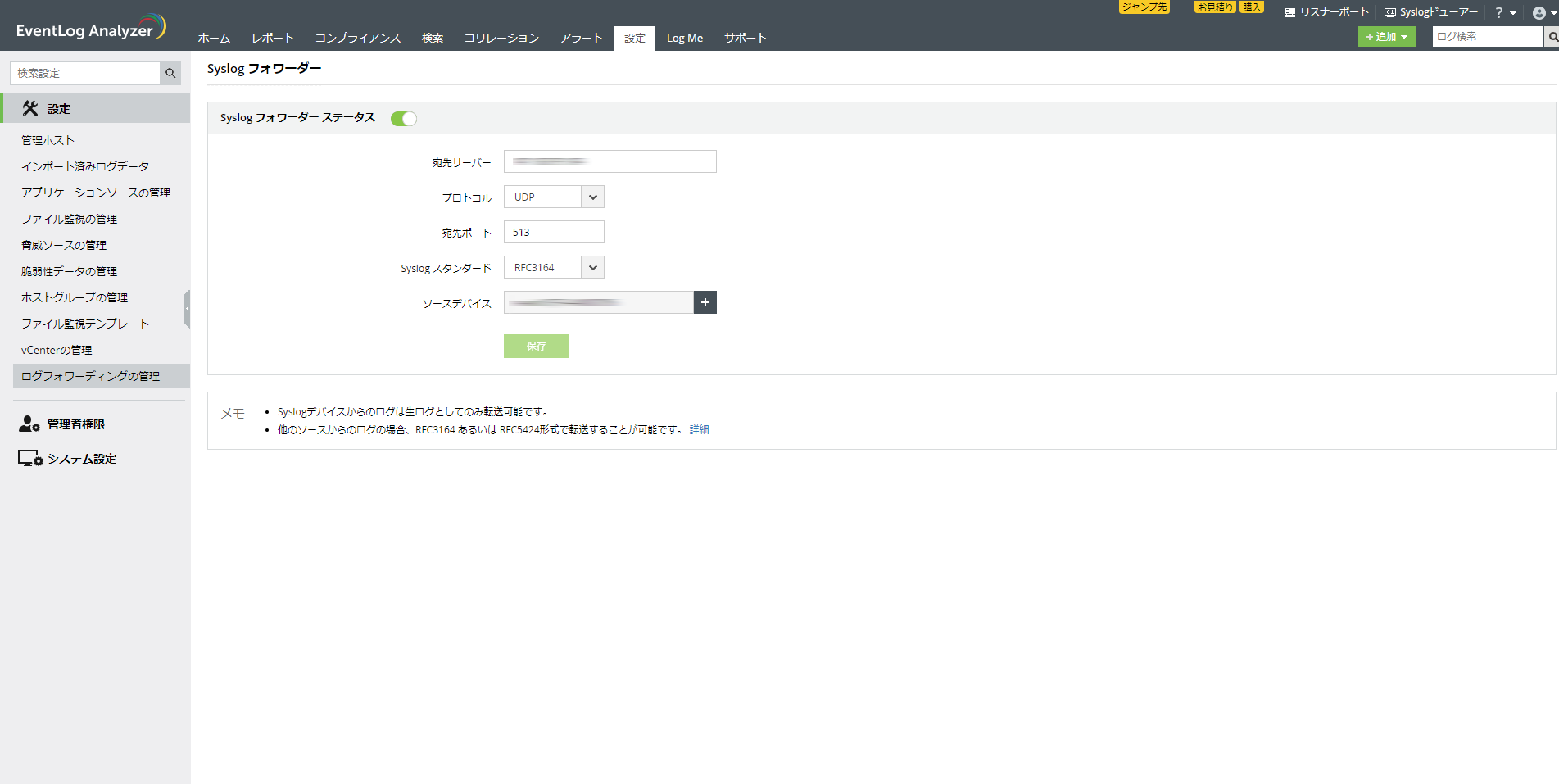 ※3 転送できるSyslogは、「RFC3164」「RFC5424」に準拠したログ形式になります。