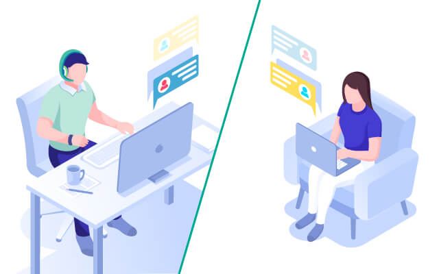 テレワーク業務開始後、社内ITサポート業務は電話や対面で対応しづらくなります。SeviceDesk Plus Cloudでは、チャットやWebフォーム、メールによるITサポートサービスの提供が可能なため、社内対応と同レベルのサポートを提供できます。問い合わせを自動でチケット変換して対応状況を可視化し、また、社員のPCインベントリ管理により在宅勤務社員のPCリモート操作も可能となるので、ストレスフリーなリモートヘルプデスク業務を実現します。また、パブリッククラウドのサービスのため、社内LANのアクセスを必要とすることなく、VPN環境などに負荷をかけずにご利用いただけます。