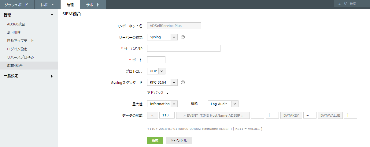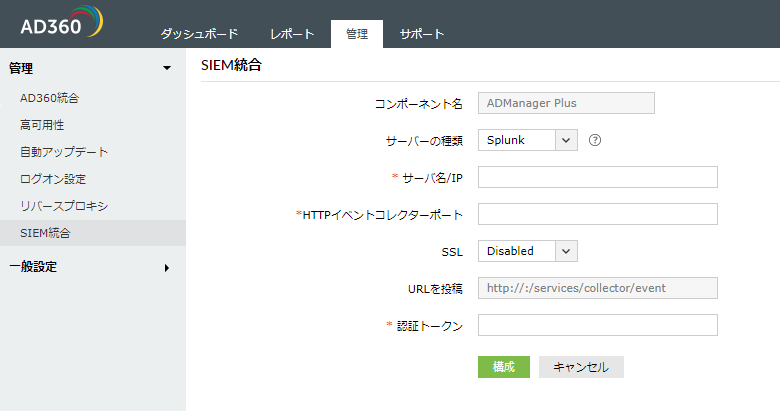 ※現在、AD360に連携できるのはADSelfService Plusのみです。他のコンポーネントの一元化されたSIEM連携オプションは現在対応中です。