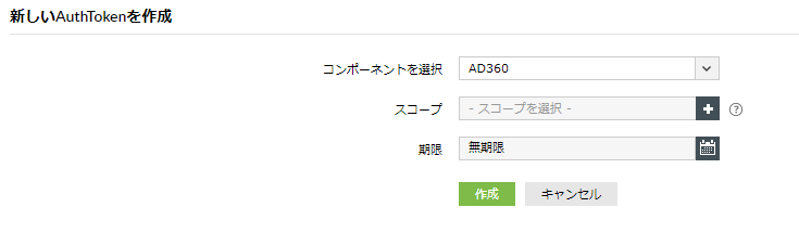 スコープは、AuthTokenを使用してアクセスできるAPIを定義します。1つまたはグループのAPIをスコープの一部にすることができます。 - [期限]にて、AuthTokenの有効期限を選択します。