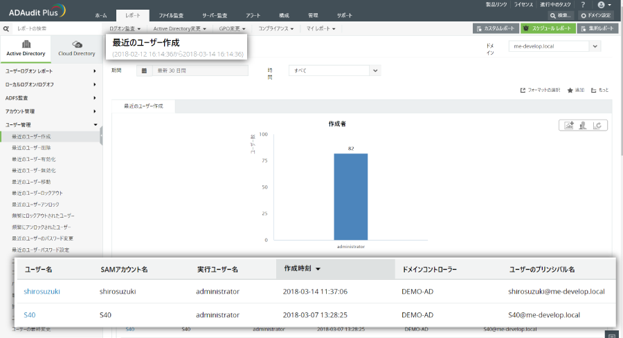 ユーザーの作成、変更、削除のイベントからわかりやすいレポートを生成します。