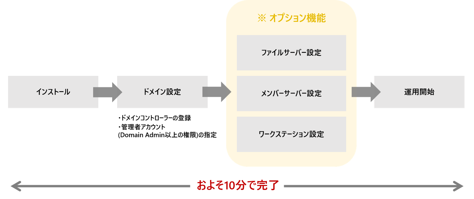 ADAudit Plusは、導入が非常に簡単です。ソフトウェアのインストールからレポート出力まで「わずか10分」程で完了します。