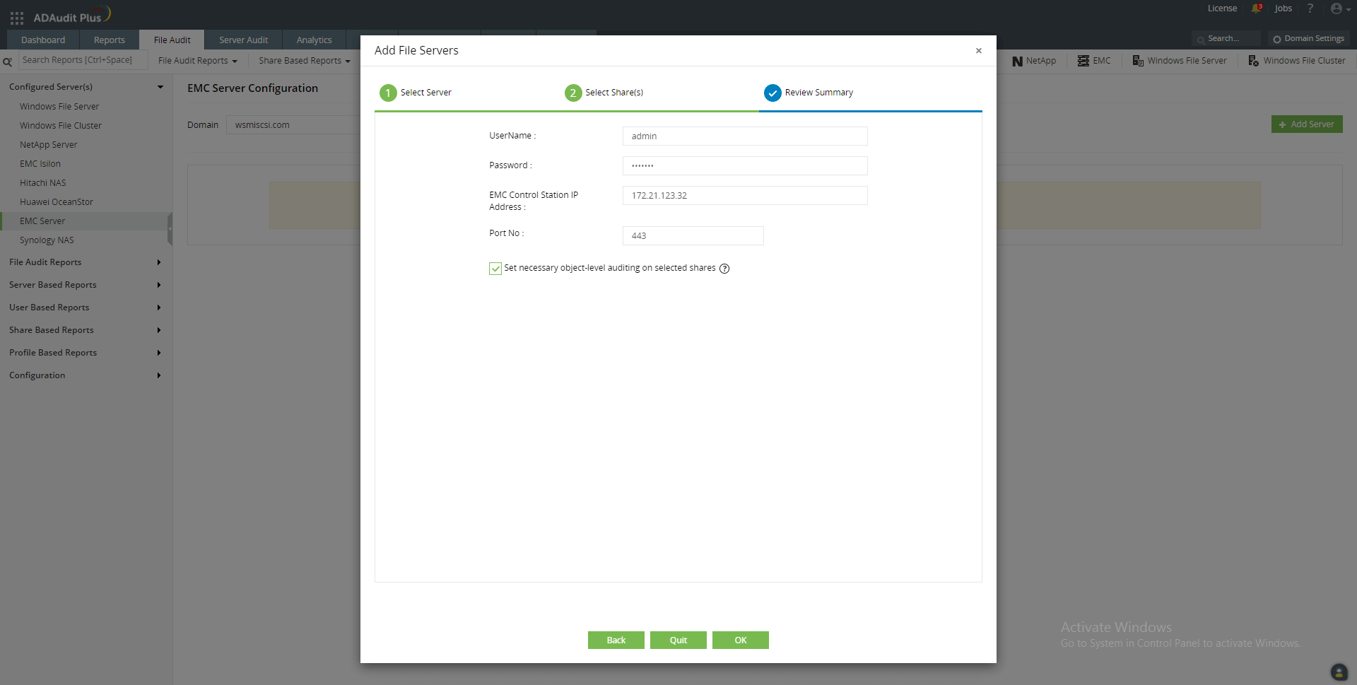 EMCサーバーをADAudit Plusに追加する手順は以下のとおりです。