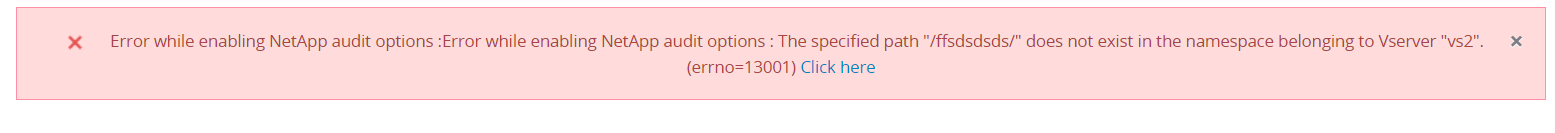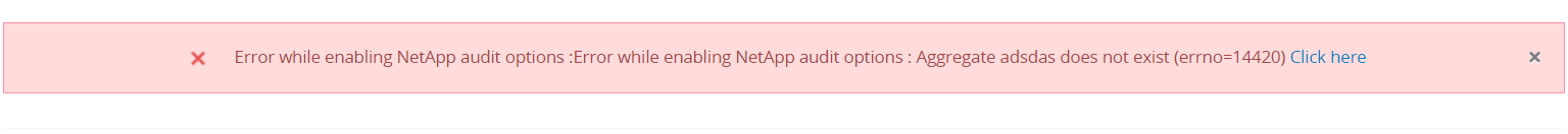 アグリゲート名(監査ログを保存するために指定された)が有効かどうか、また、構成された CIFS Vserver用のストレージプロビジョニングが存在するかどうかを確認します。