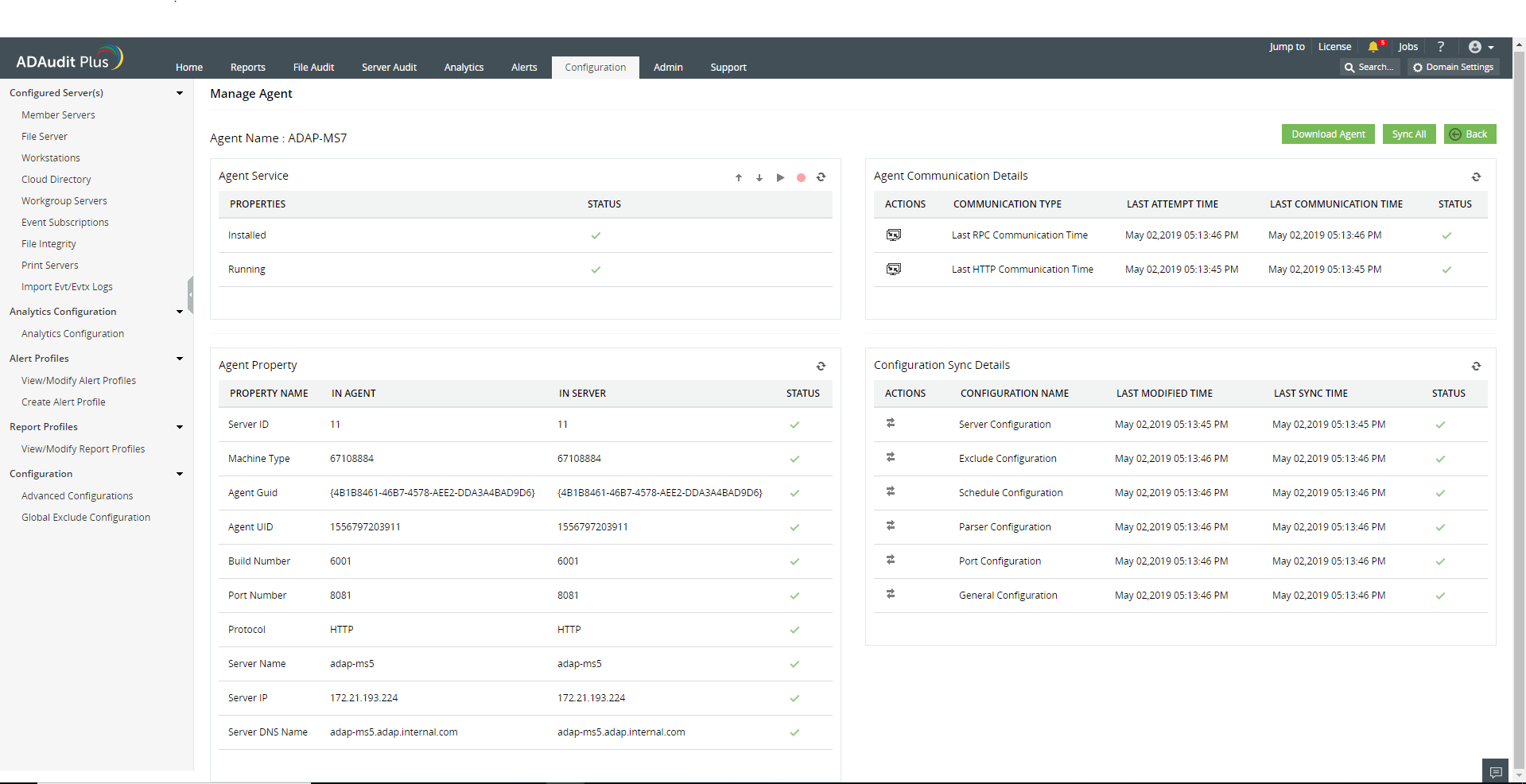 エージェントがADAudit Plusサーバーと通信できるかどうかを確認します。