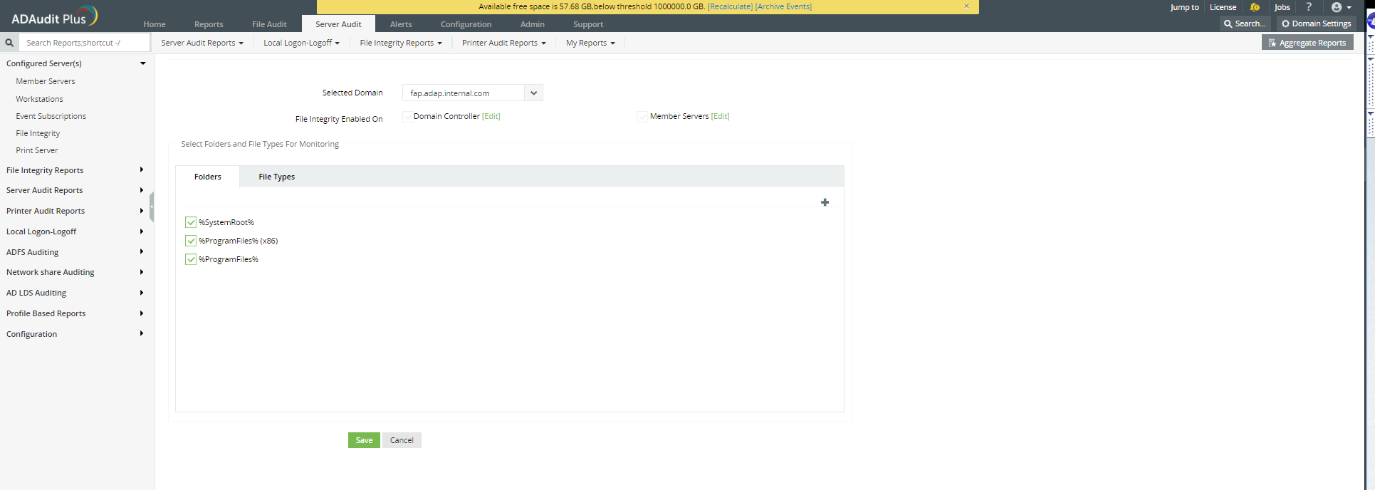 ファイル整合性監視(FIM)の設定 - ADAudit Plus