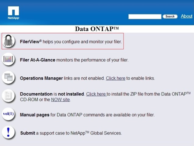 Webインタフェースからアクセスする場合は、NetApp