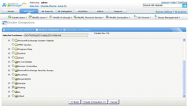- コンピューターを作成するコンテナーを選択して、コンピューターを作成ボタンをクリックします。