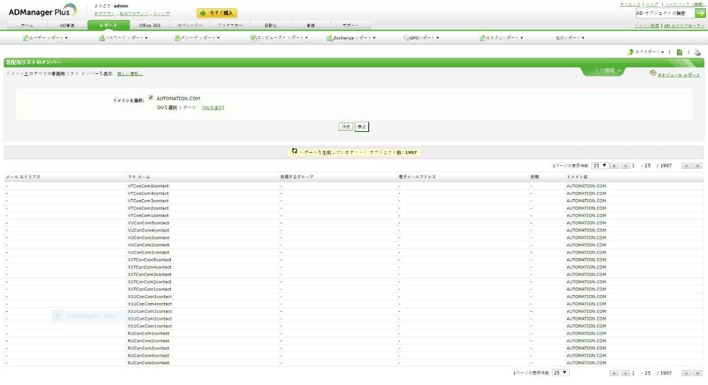 - 非配布リストメンバーのレポート:このレポートの目的は、配布リストに所属していないすべてのユーザーを特定することです。
