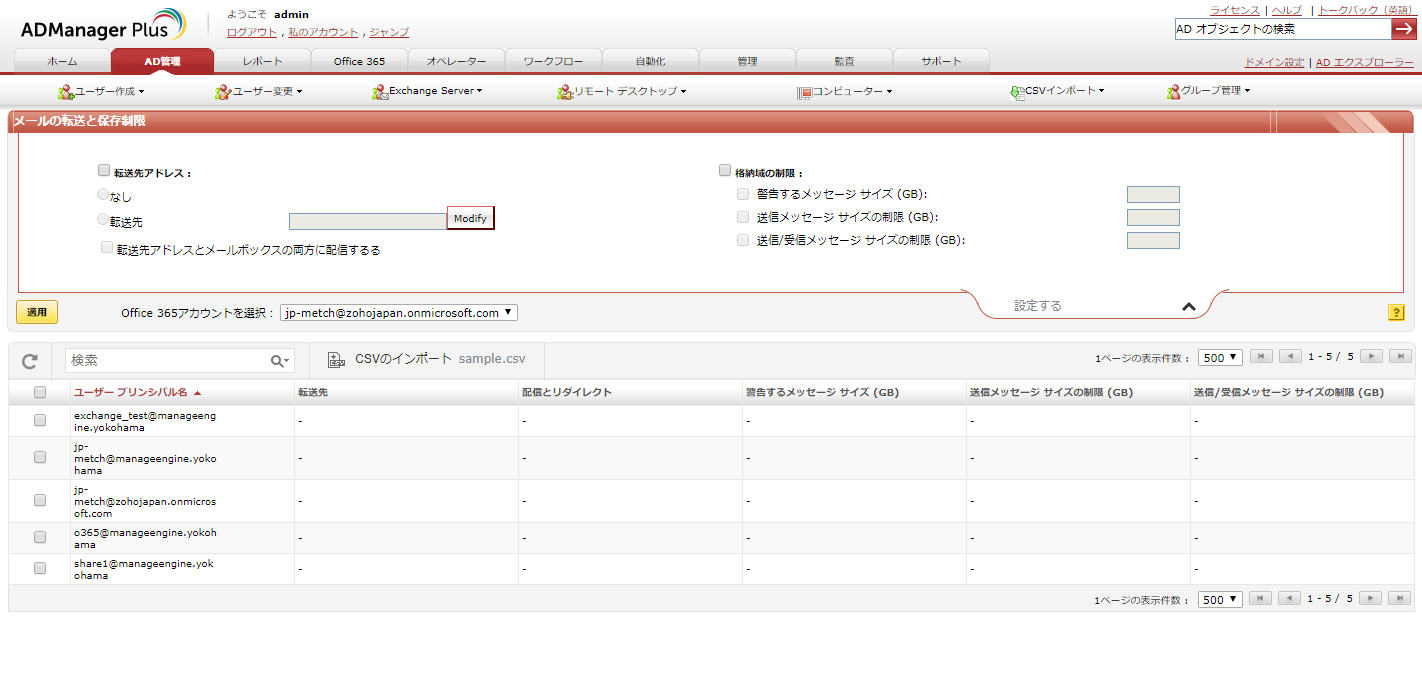 ADManager PlusはExchange Onlineを管理します。次のことが可能です: