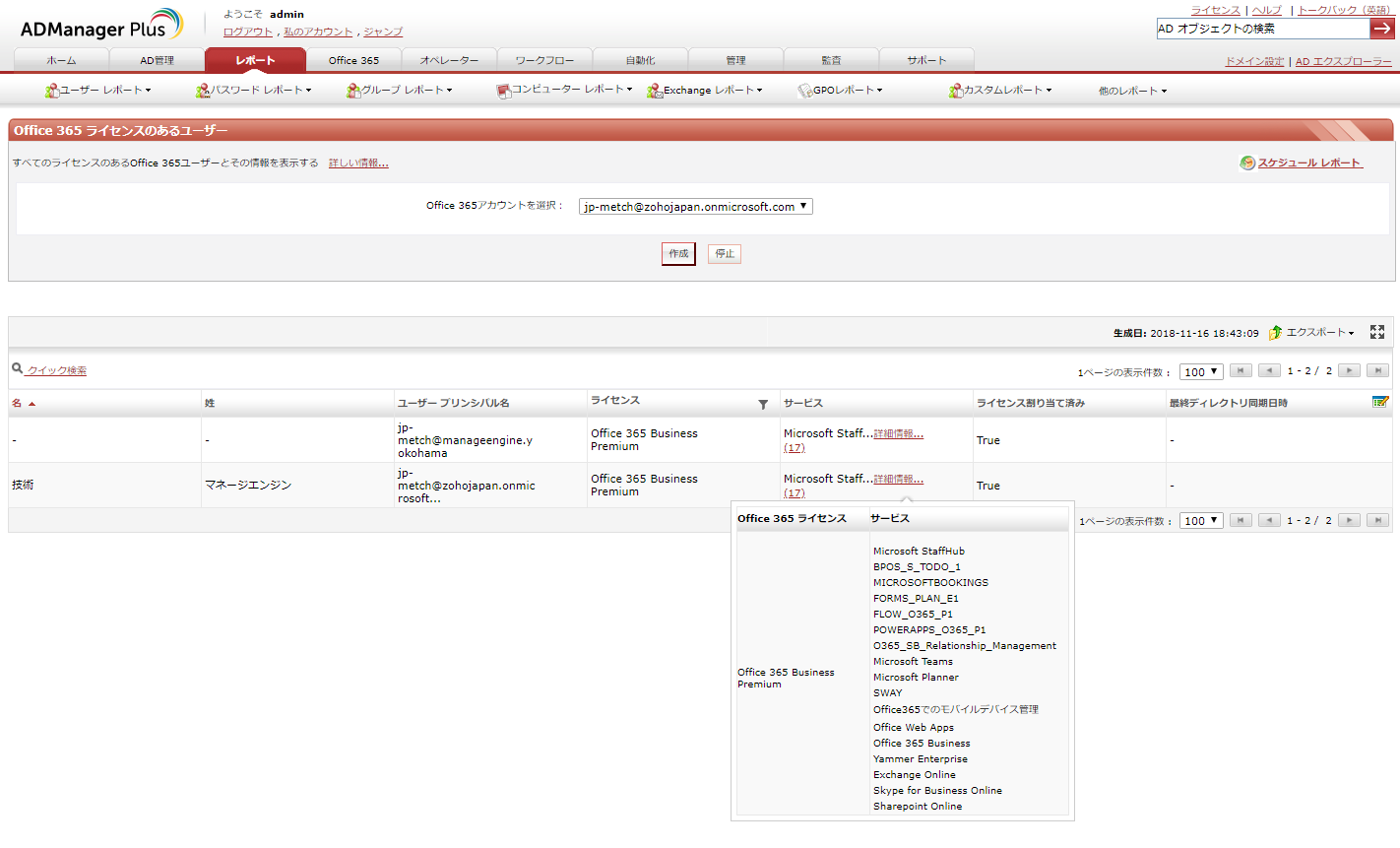 ADManager PlusはMicrosoft 365のユーザーに関する次のレポートを作成します: