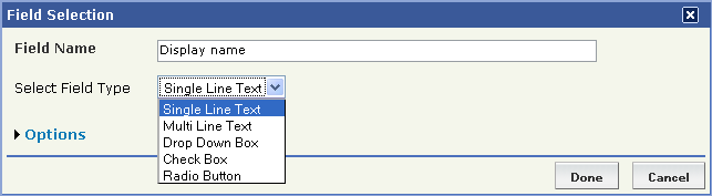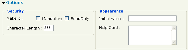 「フィールドを選択」画面の「オプション」を使用し、セキュリティと外観を設定することができます。