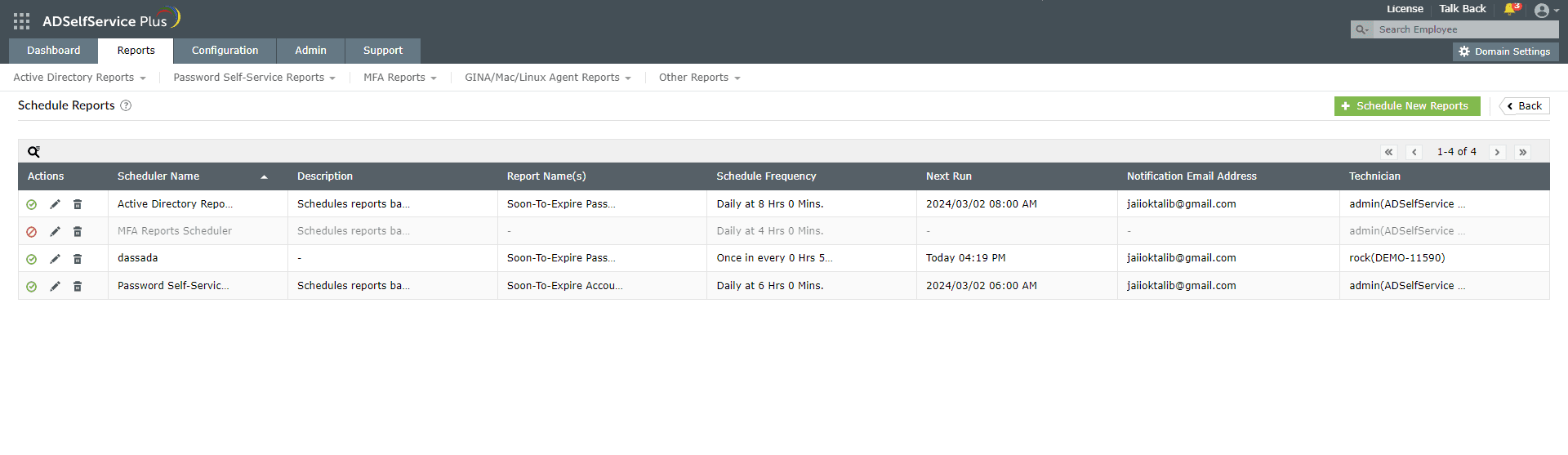 各レポートで[スケジュールレポート][