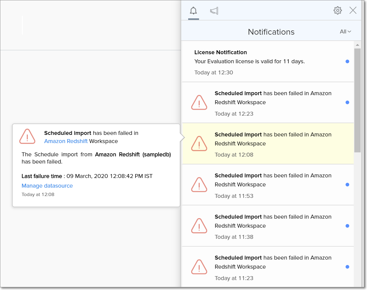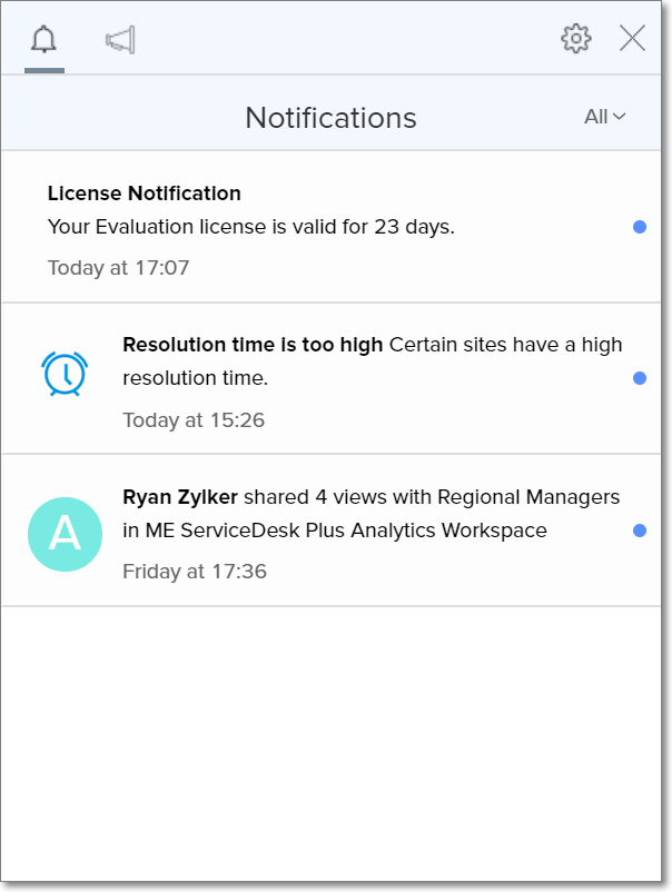 通知ダイアログの設定アイコンをクリックして、各通知を要件に合わせて有効または無効にできます。