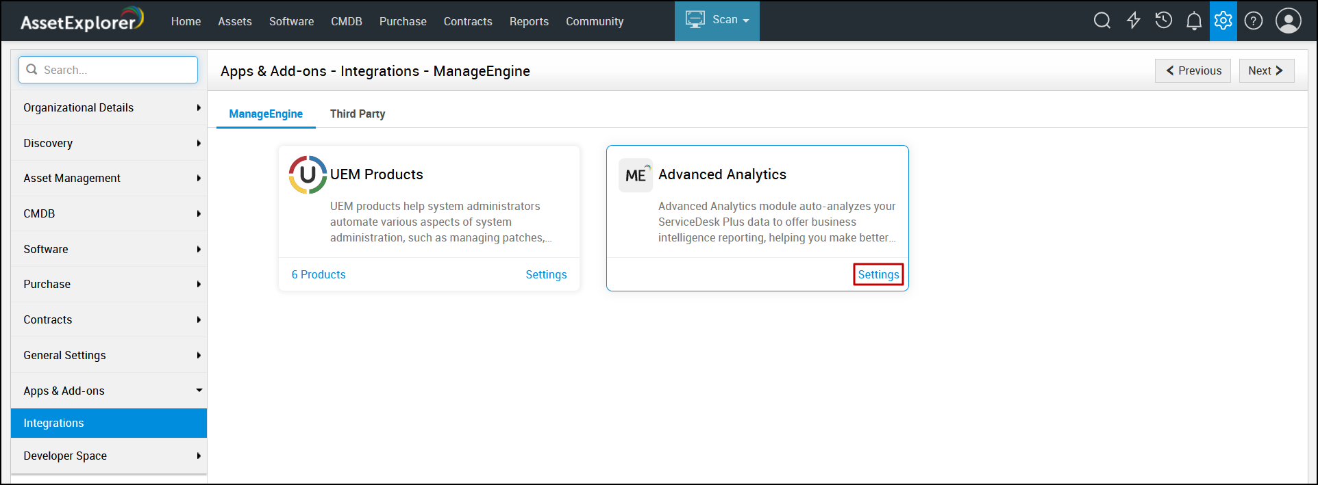 Analytics PlusとAssetExplorer統合をセットアップするには、ユーザーはAssetExplorerの管理者、およびAnalytics Plusのアカウント管理者または組織管理者である必要があります。