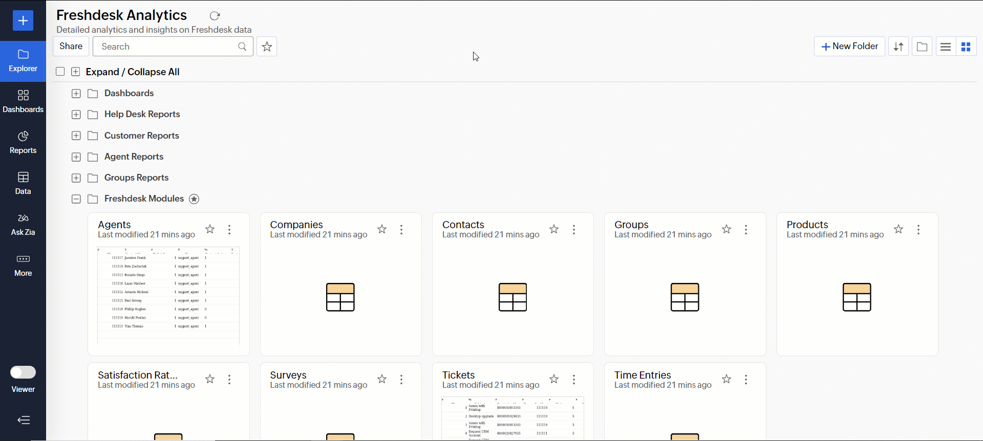 作成されたレポートとダッシュボードは、指定されたフォルダー内に保存されます。