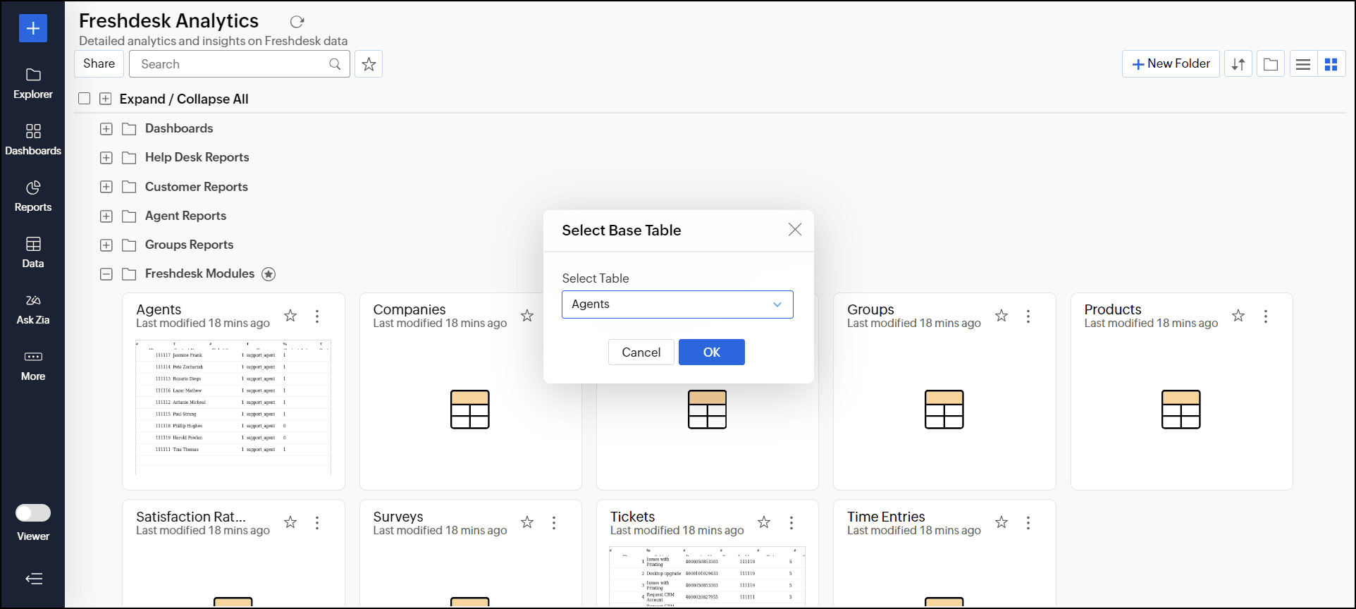 表示されるポップアップで作成対象の元となるテーブルを選択し、[OK]をクリックします。