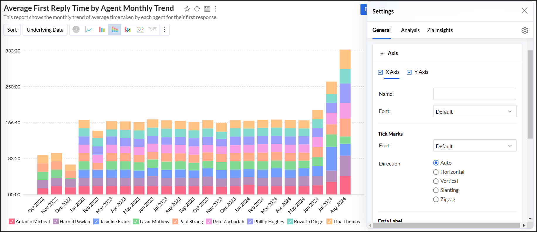 - 方向:このオプションでは、チックラベルの方向を設定します。