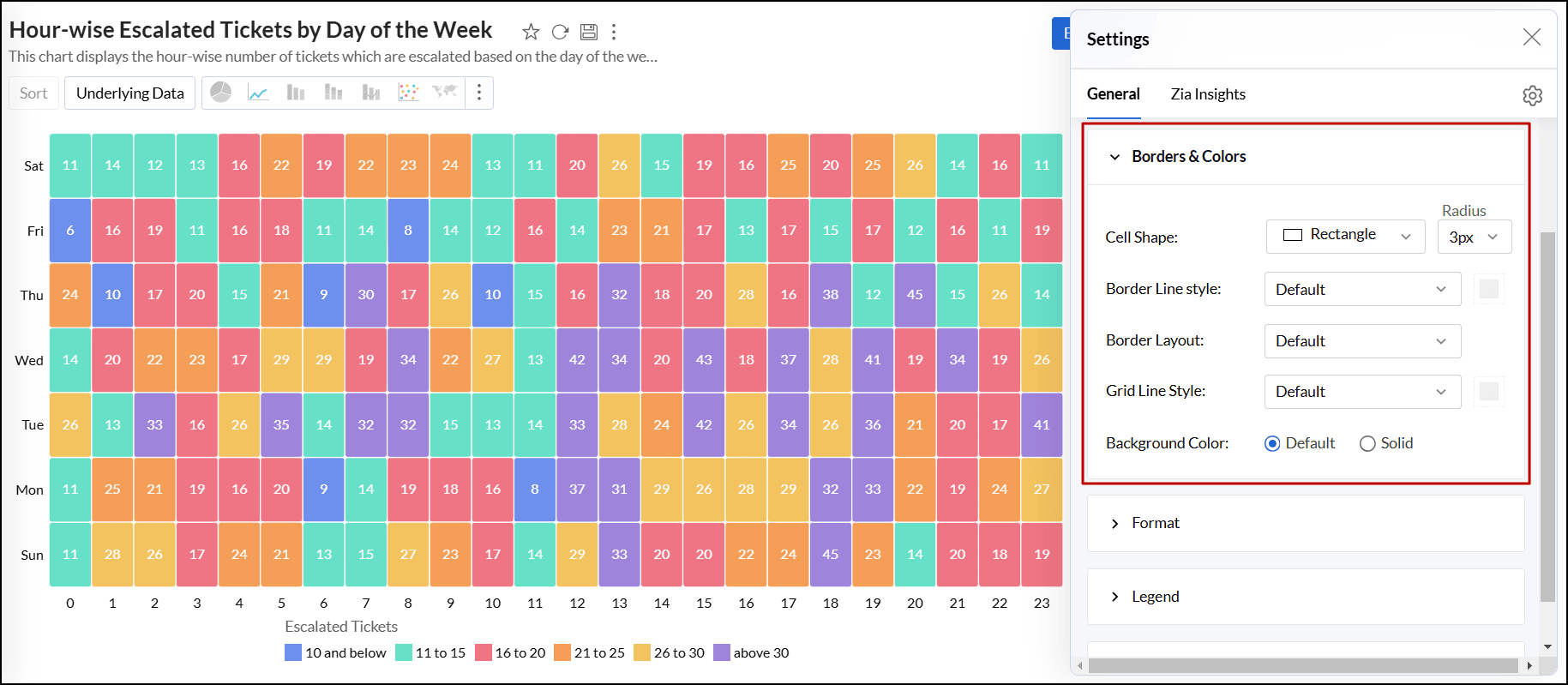 - 背景スタイル:チャートに背景色を適用します。デフォルトでは、背景色は適用されません。必要な場合、[原色]オプションを選択して、色を選択します。