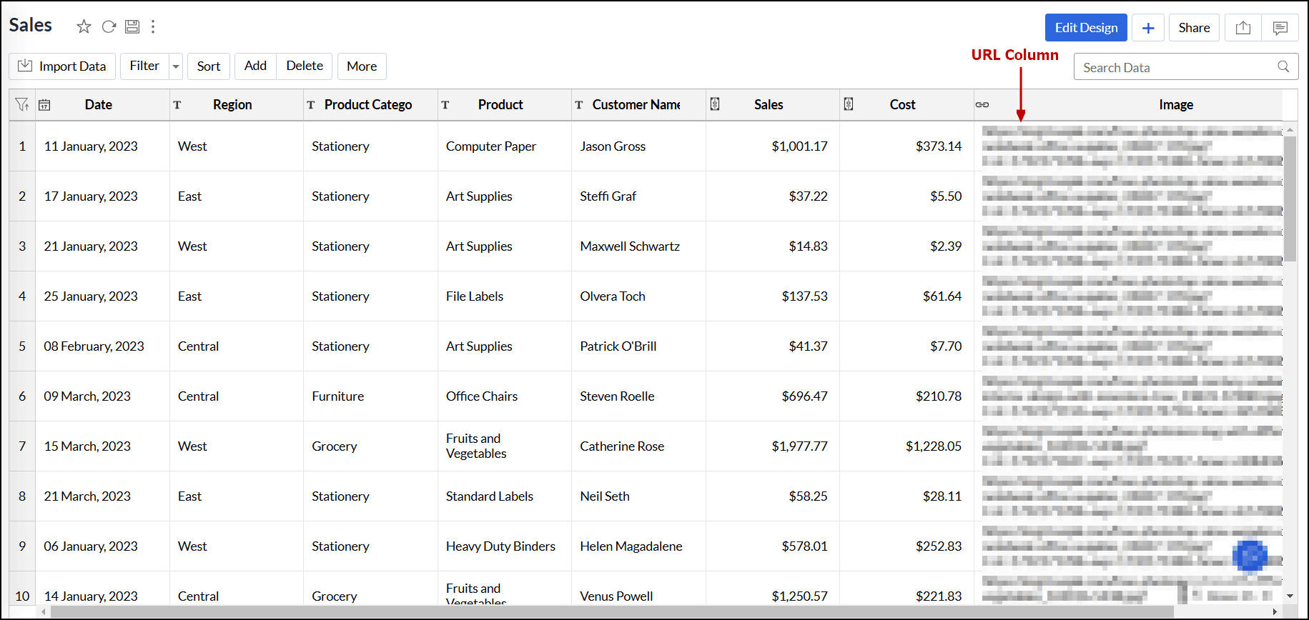 - 並べ替え:URLデータタイプ列の場合、Analytics Pluは、列中の実際のURLにあわせて並べ替えを実行します。