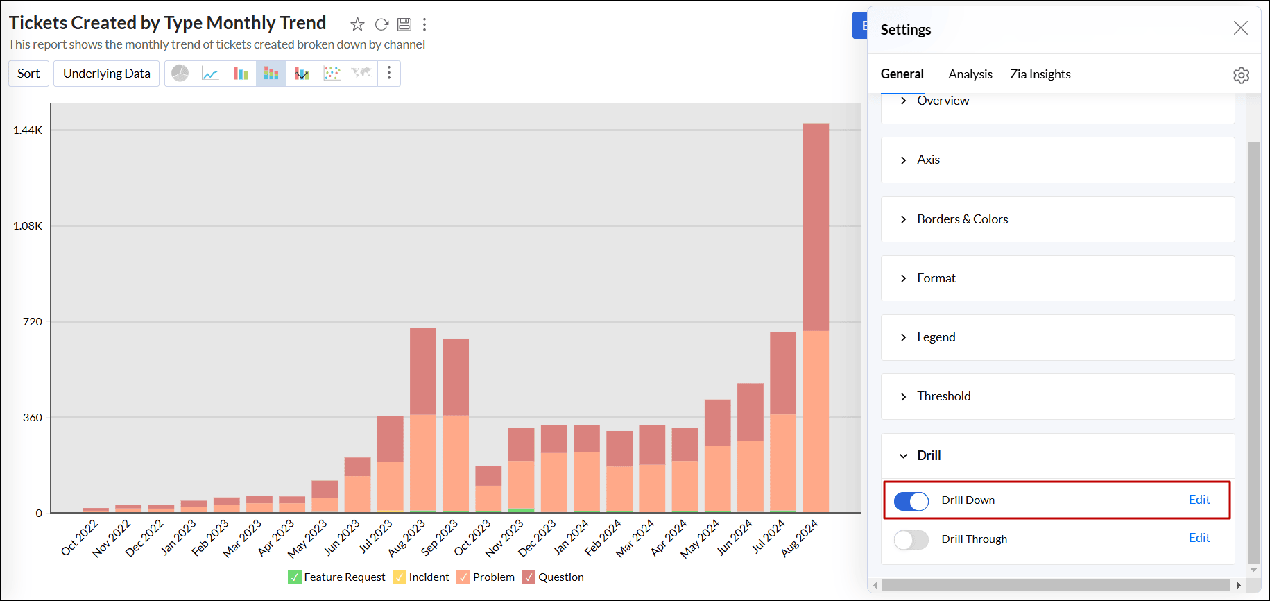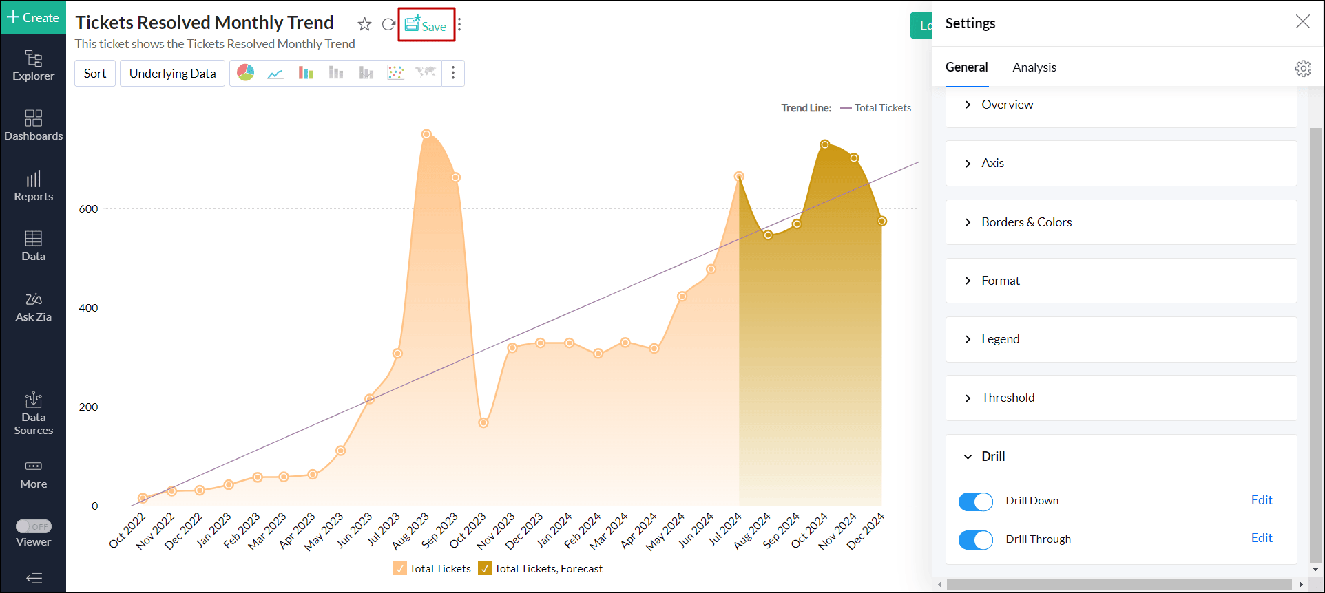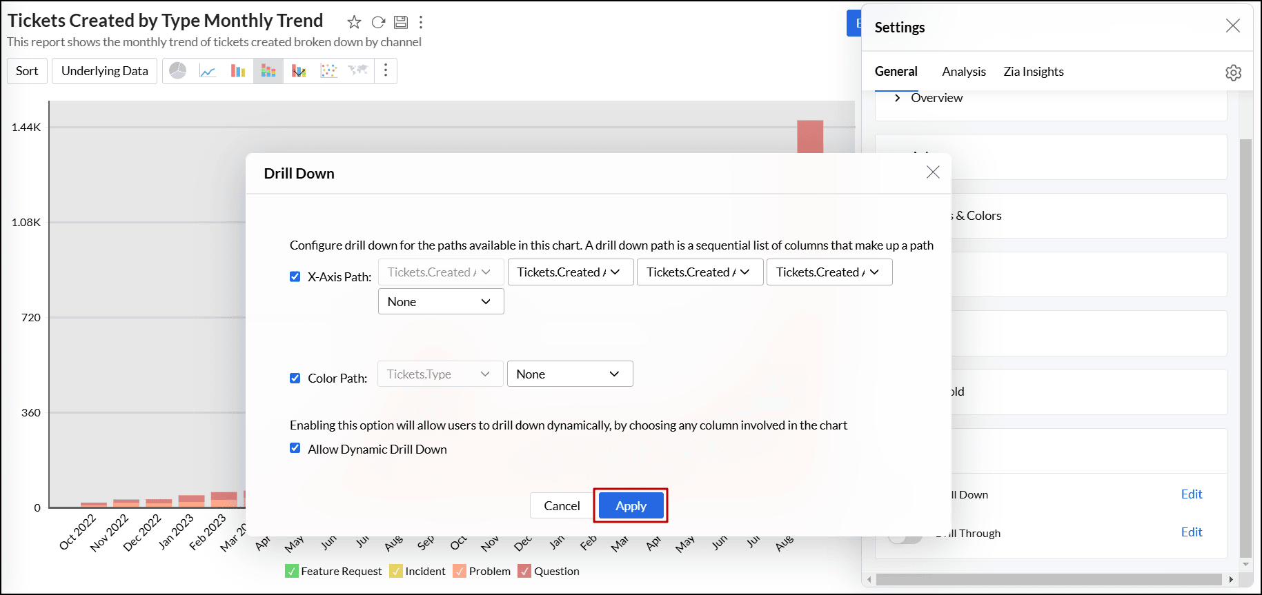 - ドリルダウン:これを選択解除すると、チャートからドリルダウンオプションが完全に削除されます。