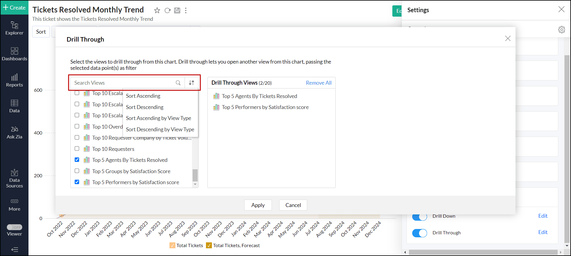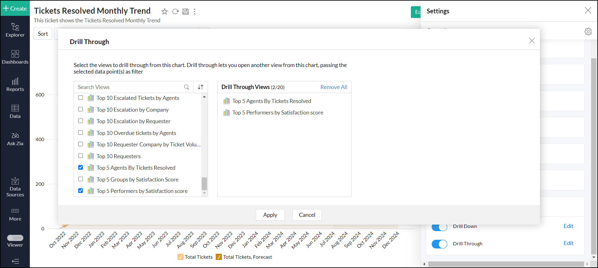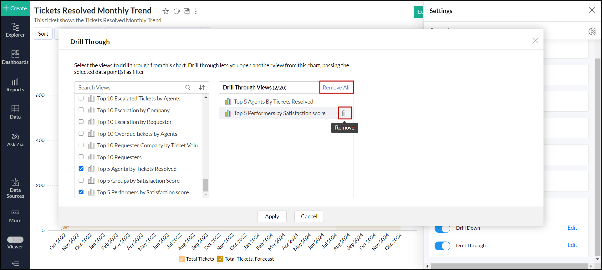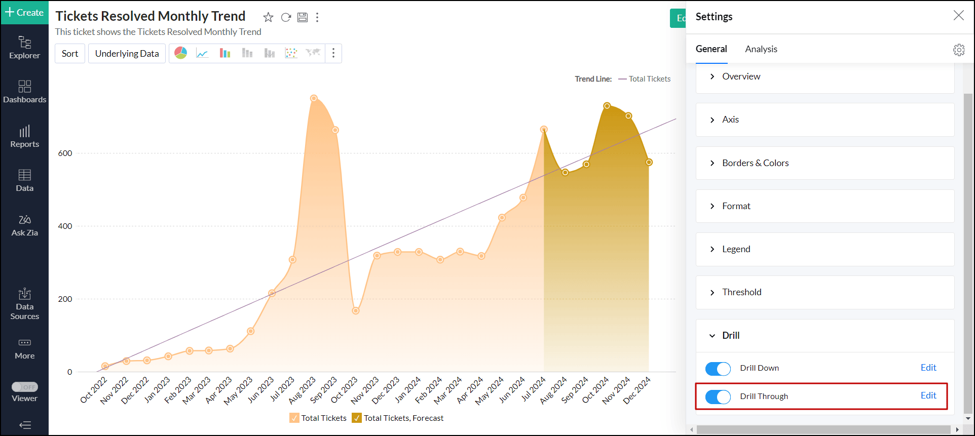 - ドリルダウン:これを選択解除すると、チャートからドリルダウンオプションが完全に削除されます。