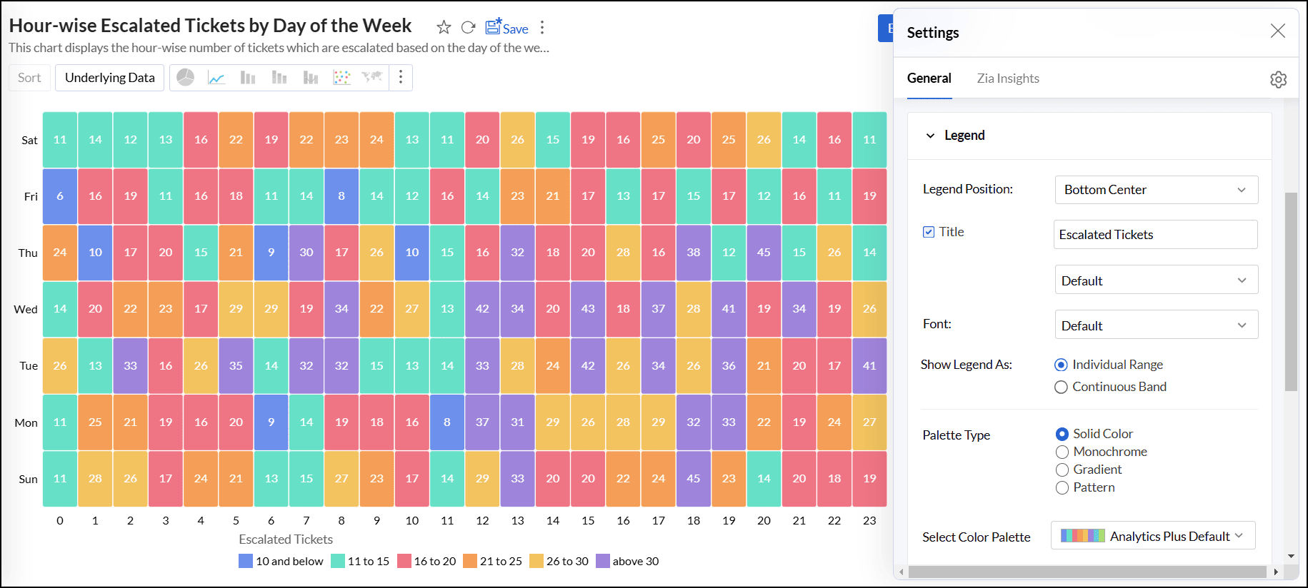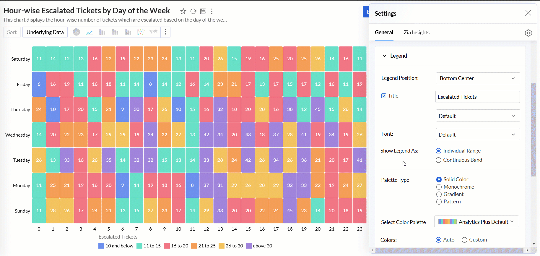 - パレットタイプ:Analytics Plusには、凡例色をカスタマイズするパレットタイプが3つあります。
