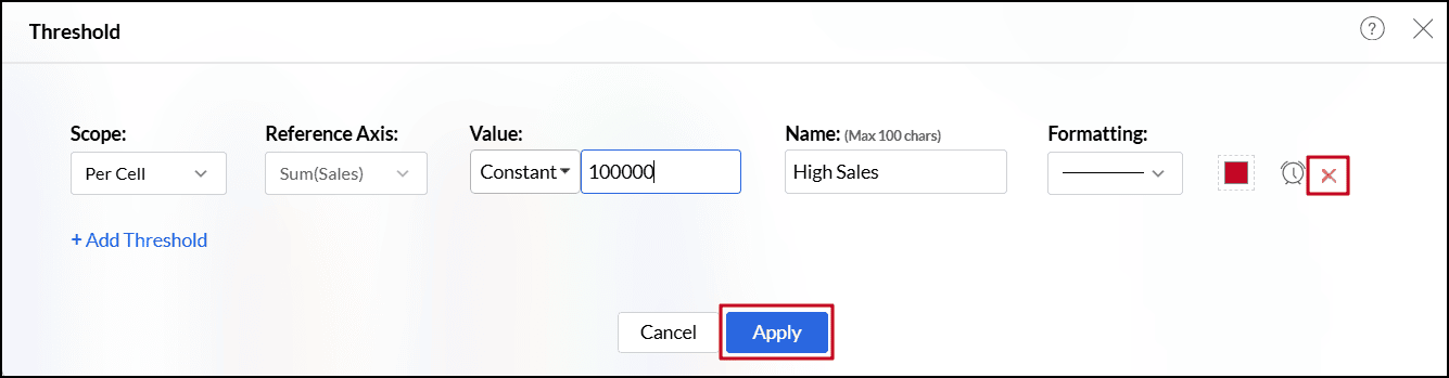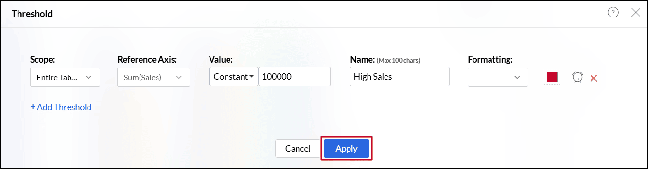 - 必要な閾値線を追加したら、[適用]をクリックします。