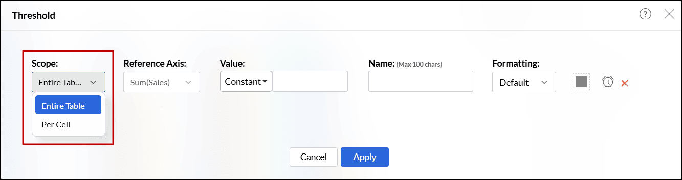 - セルごと:レポートに表された各データポイントに別の閾値を適用します。