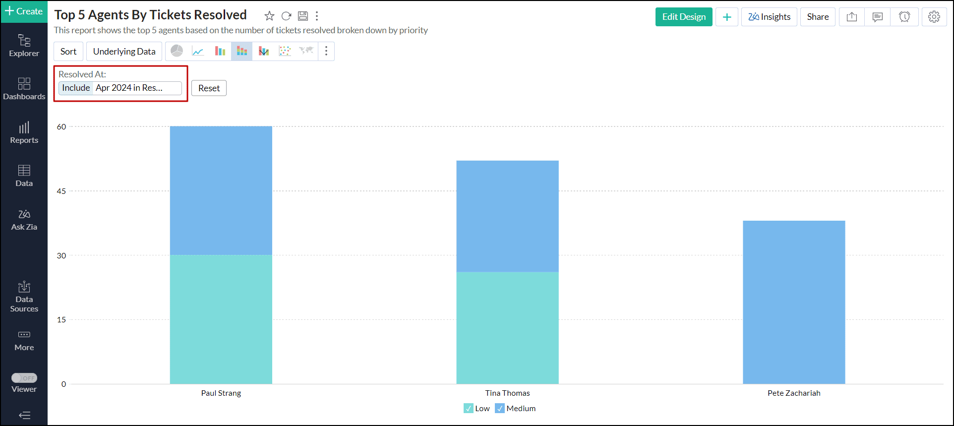 選択したレポートが、選択したデータポイントにしたがってフィルターが適用された新しいタブで開きます。