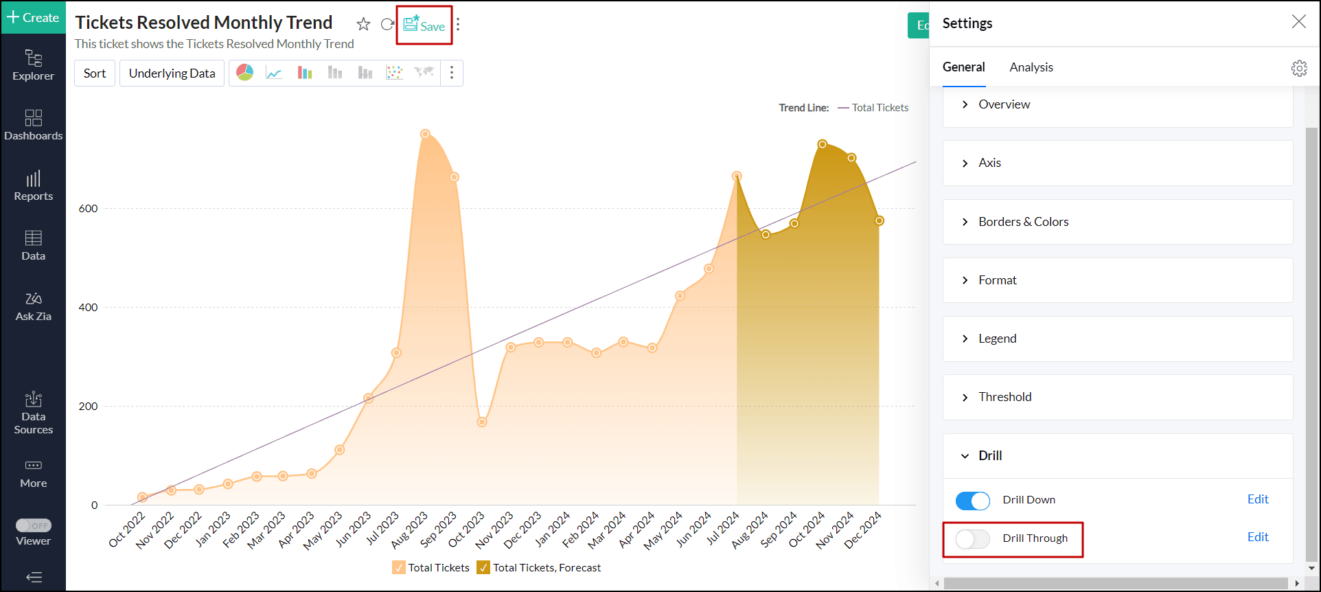 - [ドリルスルー]トグルボタンを無効にして、[保存]をクリックします。