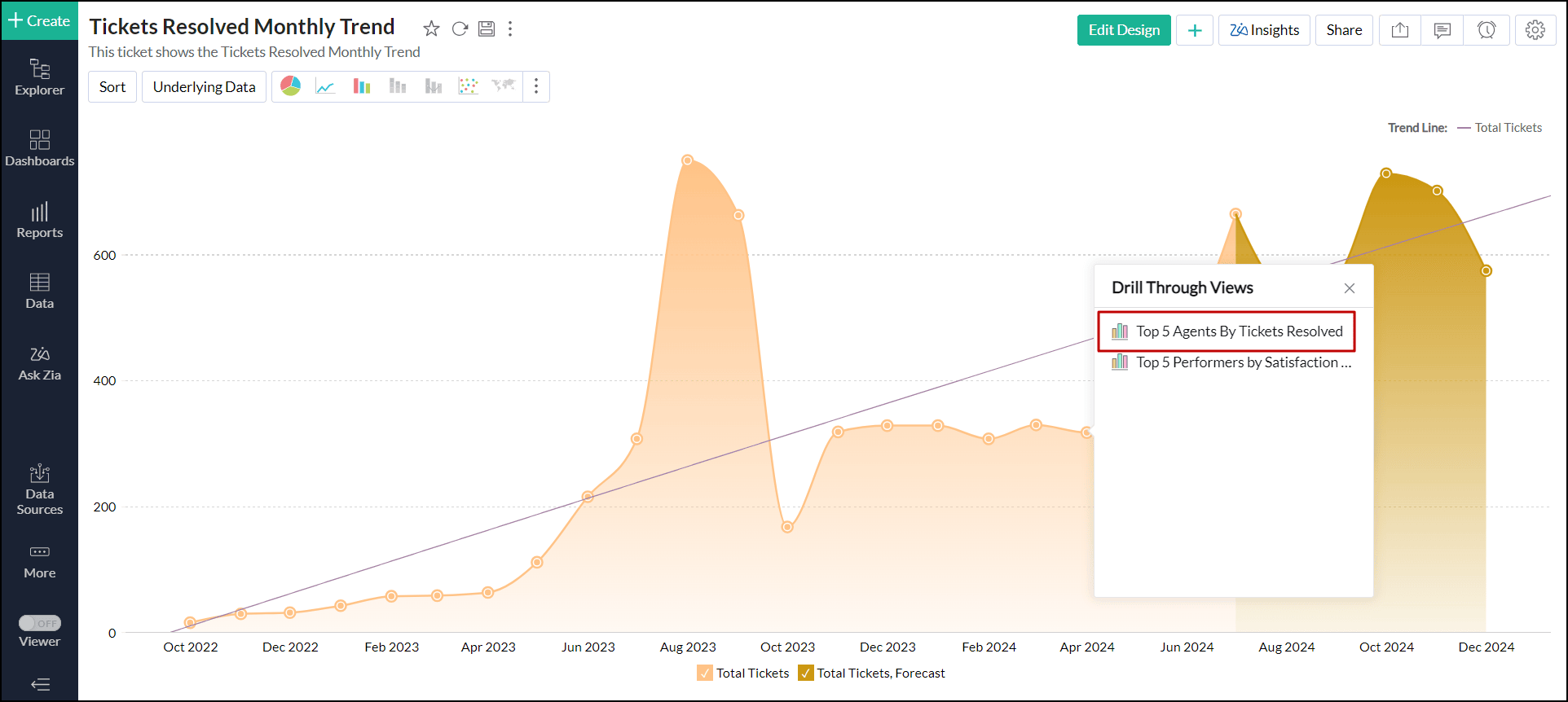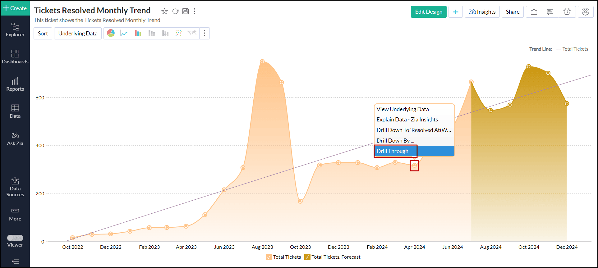 - レポートのいずれかのデータポイントをクリックし、[ドリルスルー]を選択します。