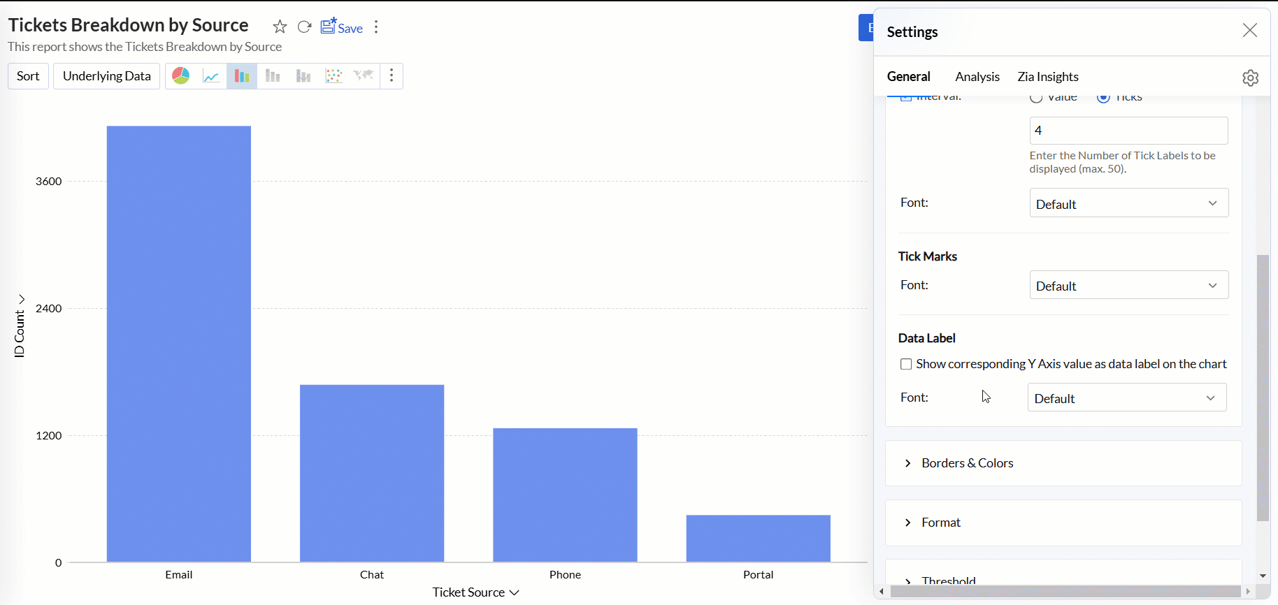 - フォント:このオプションでは、軸のデータラベルのフォントスタイル、サイズ、および色を設定することができます。
