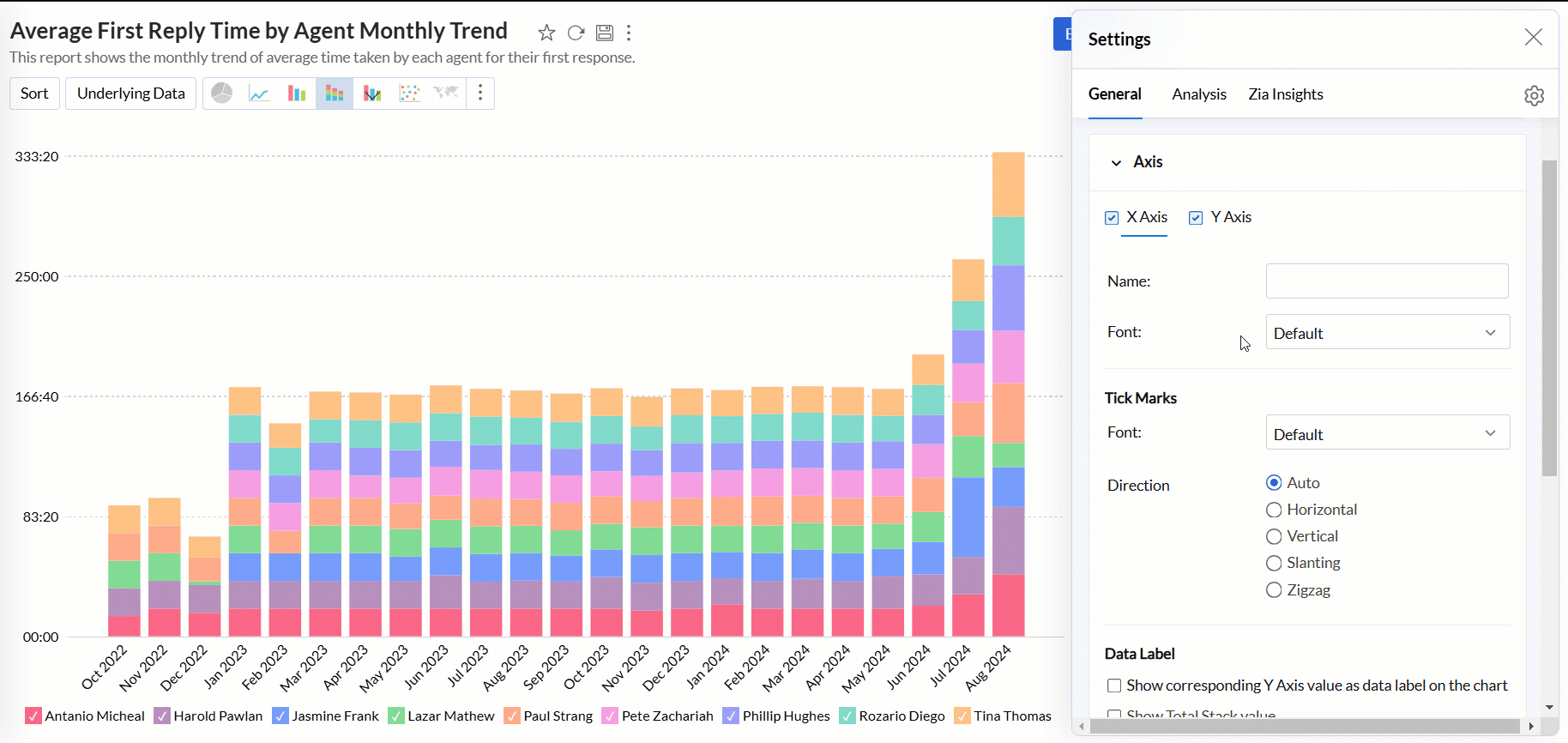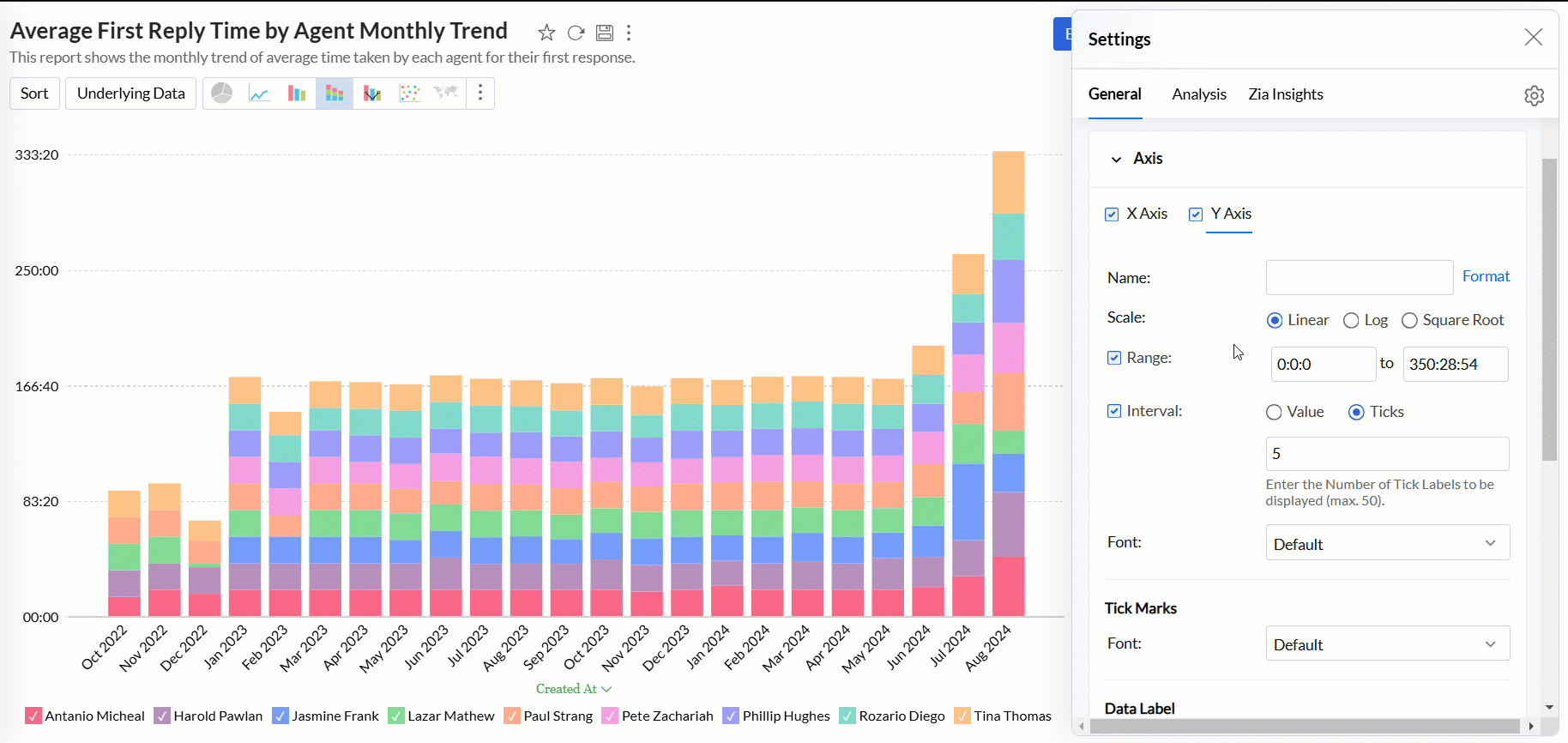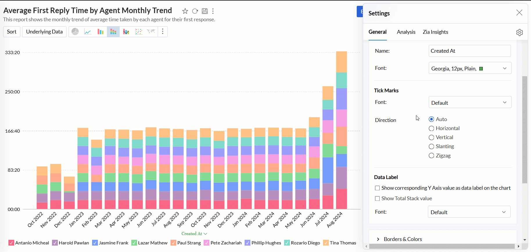 - フォント:このオプションでは、軸ラベルに必要なフォントスタイル、サイズ、および色を選択することができます。