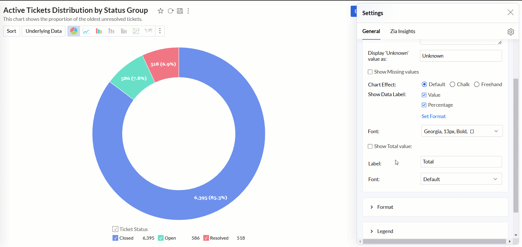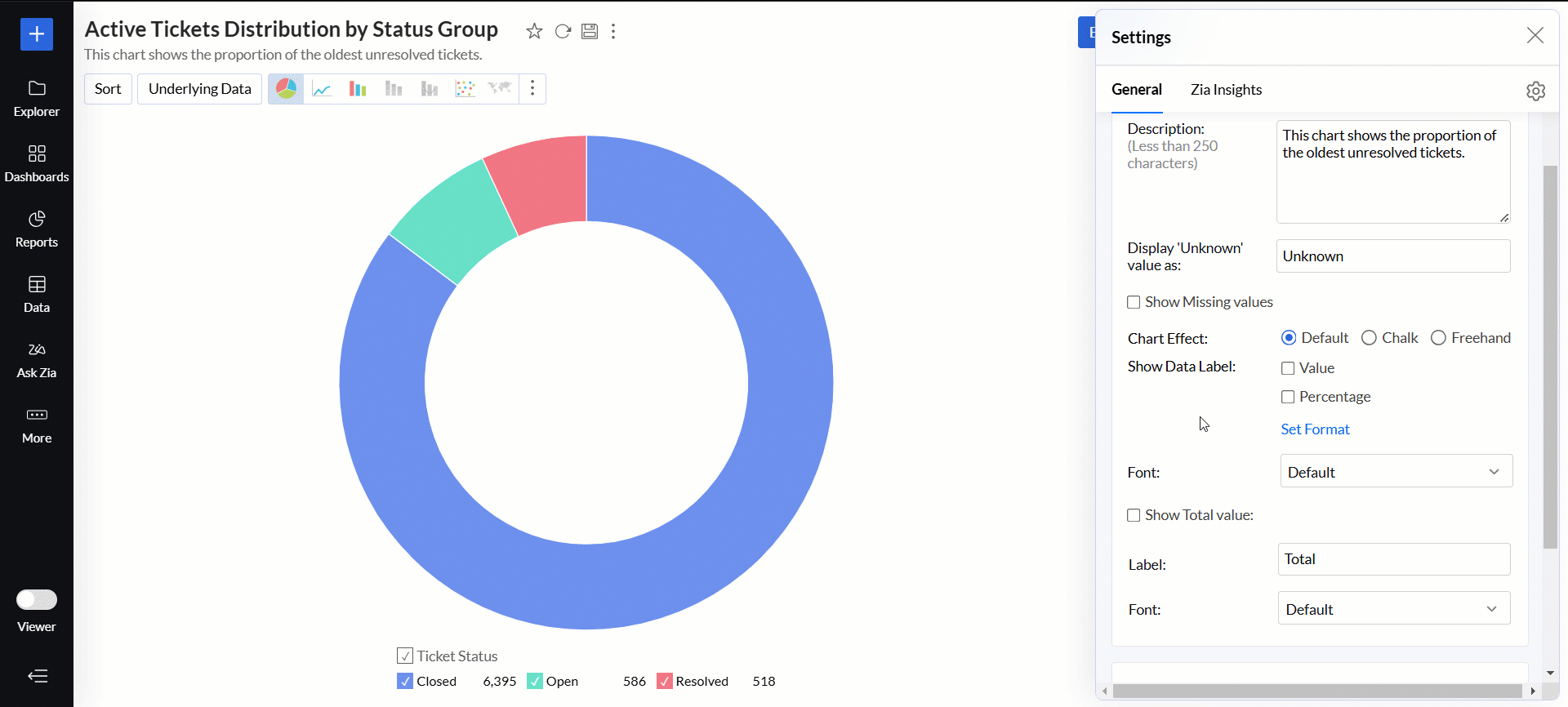 - 「不明」値を名前をつけて表示:このオプションでは、null、空、または欠損データポイントがある場合にチャートに表示される値を定義できます。