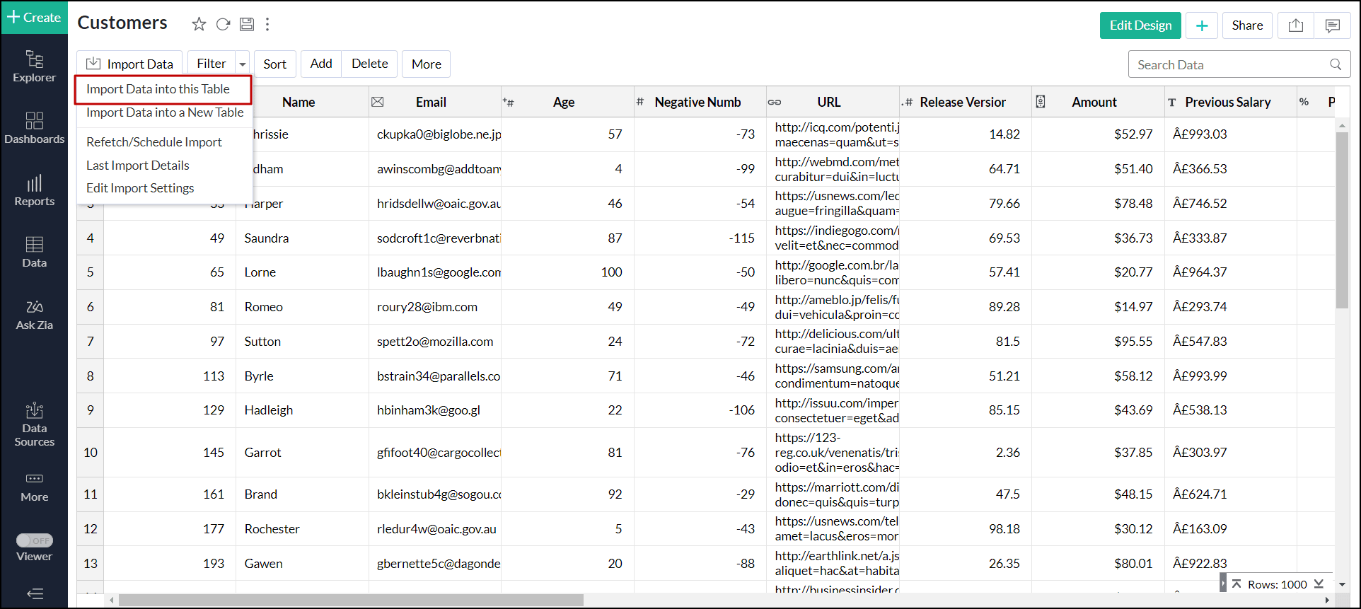 [データをインポート]>[データをこのテーブルにインポート]オプションをクリックします。