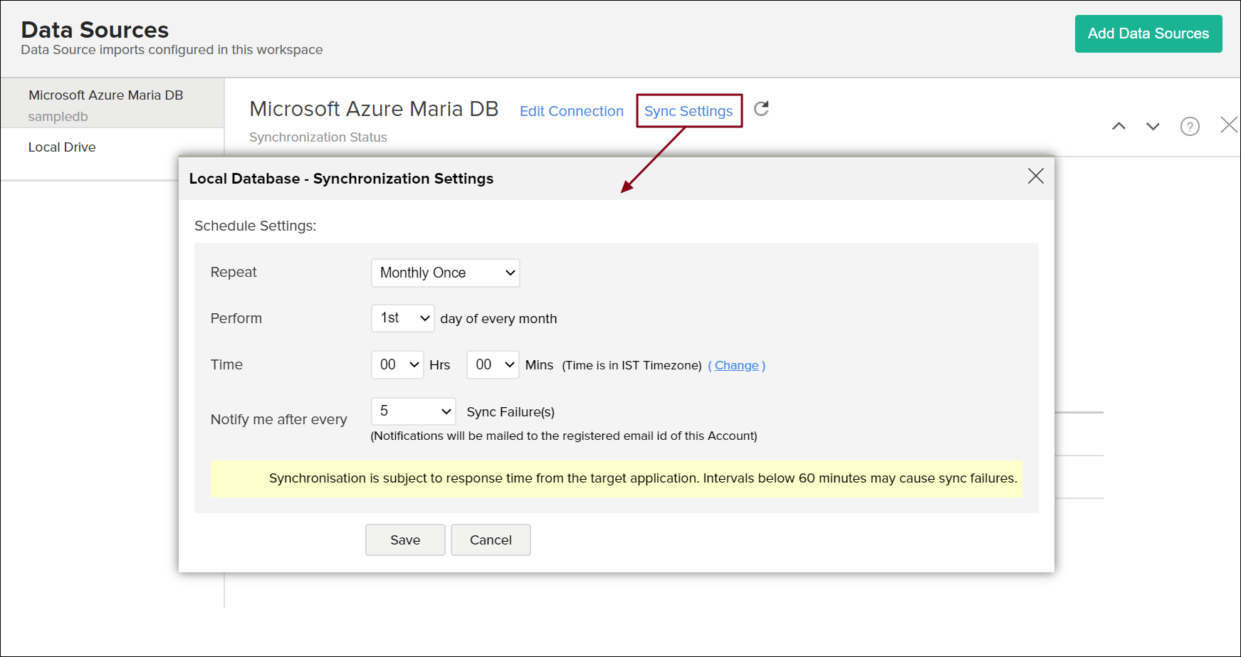- 「Notify me after every 'N' Sync Failure (s)」セクションを使用して通知する連続インポート失敗の数を指定します。