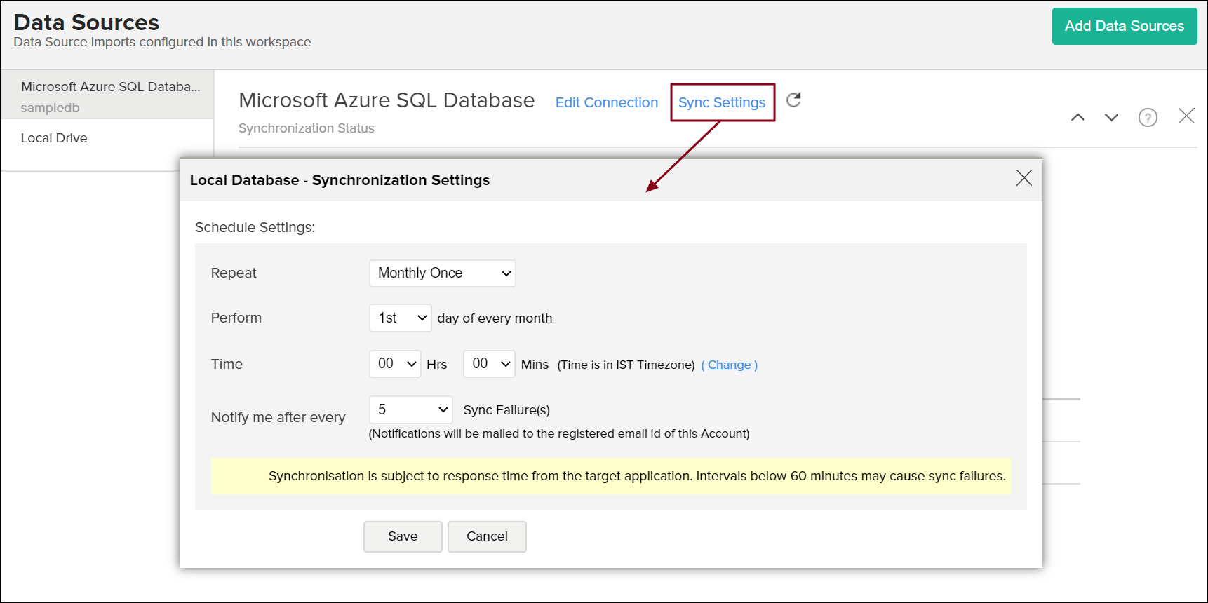 - 「Notify me after every 'N' Sync Failure (s)」セクションを使用して通知する連続インポート失敗の数を指定します。