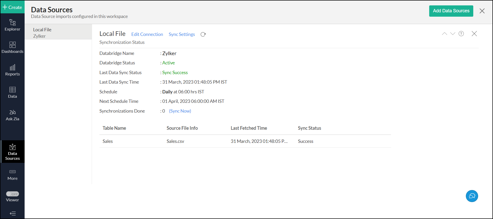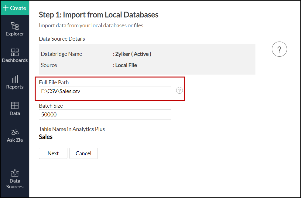 Analytics Plusを使用すると、ManageEngine Databridgeを使用して、大容量CSVファイル (100 MB または 100,000 列を超える) に保存されたデータを簡単にインポートできます。ManageEngine Databridgeは、 ローカルマシンとAnalytics Plus間のギャップを埋めて、データのインポートを簡単にする軽量の独立ユーティリティです。定期的にデータをAnalytics Plusに同期するインポートプロセスを自動化することもできます。ManageEngine Databridgeの詳細については、「ManageEngine Databridge」を参照してください。