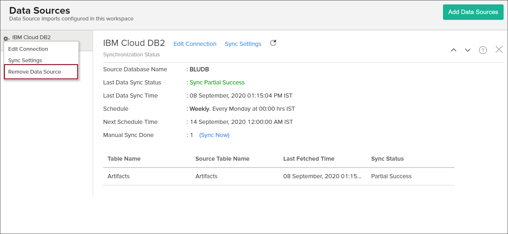 ライブ接続設定を削除するには、対応する分析ワークスペースを削除する必要があります。これを行うには、Analytics Plusホームページで対象のワークスペースに移動し、[その他の操作]アイコンをクリックします。[ワークスペースの削除]オプションを選択し、表示されるポップアップで操作を確認します。