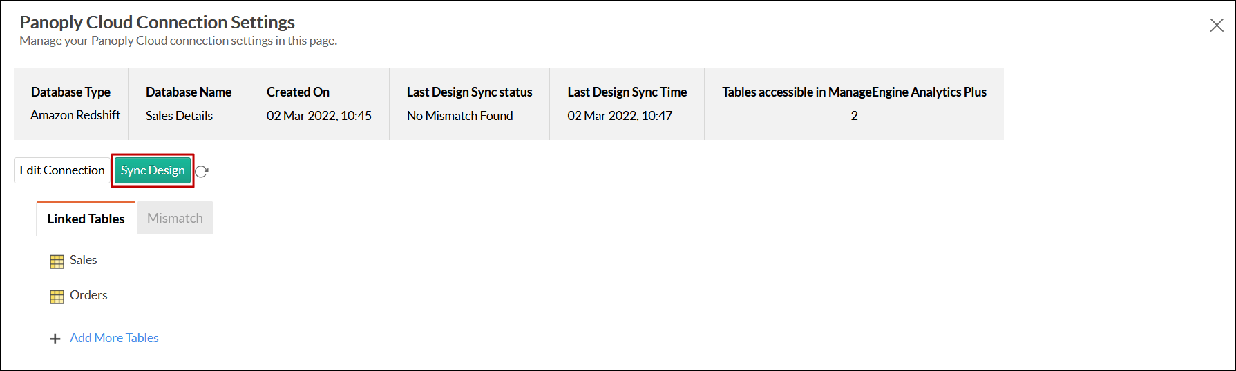 データベース内のデータに直接マッピングされていない列またはテーブルに対してAnalytics Plusでレポートを作成した場合、不一致が発生します。これらの不一致は、サイドパネルの [データソース] ボタンをクリックするとアクセスできる [クラウドデータベース接続設定] ページにリストされます。詳細は、次のQ&Aを参照してください。