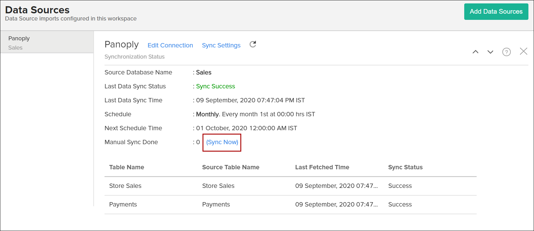 サイドパネルから [データソース] オプションを選択し、対象のPanoplyデータソースに移動します。