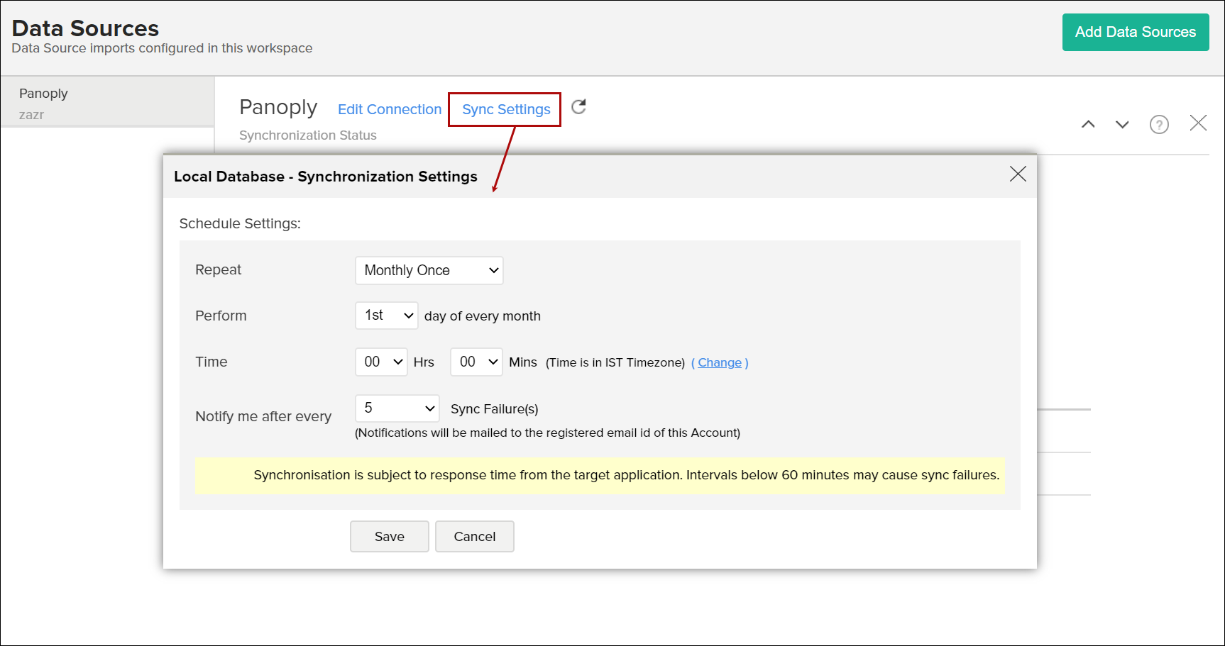 [保存]をクリックします。Panoplyデータベースのデータは、指定された間隔でAnalytics Plusにインポートされます。