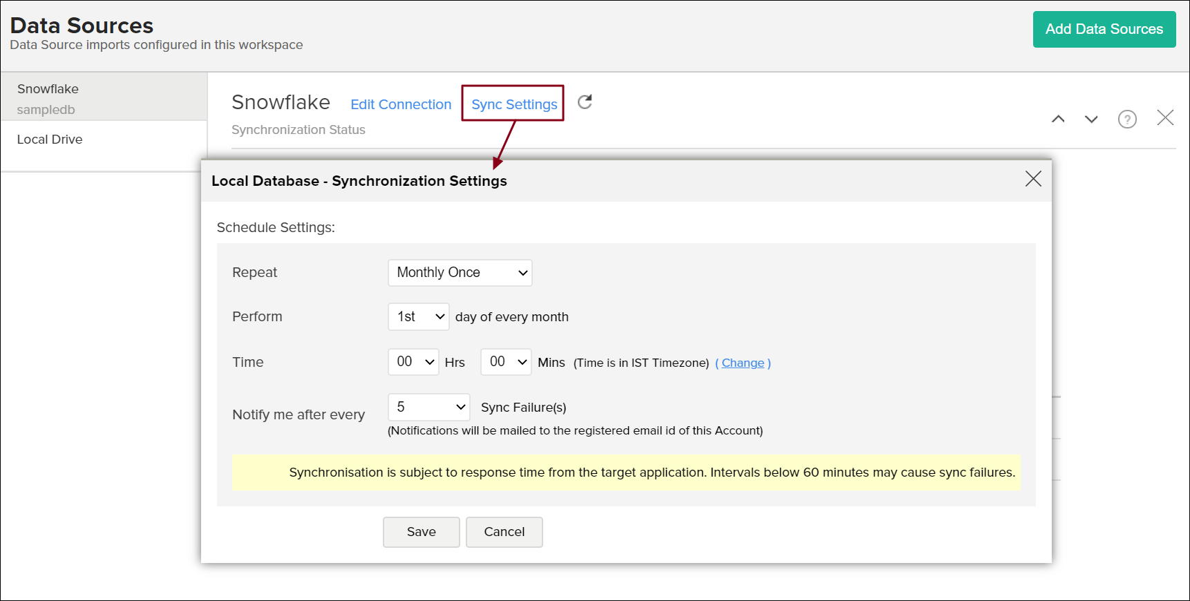 [保存]をクリックします。Snowflakeデータベースのデータは、指定された間隔で Analytics Plus にインポートされます。