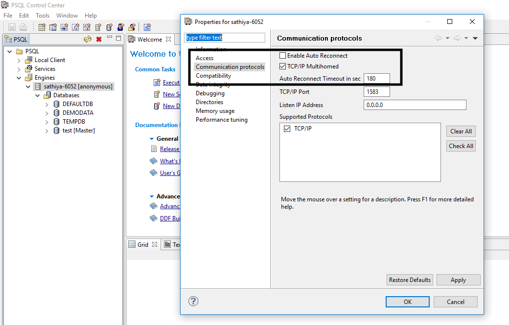 - 通信プロトコルを選択します。TCP/IP マルチホーム オプションを有効にします。