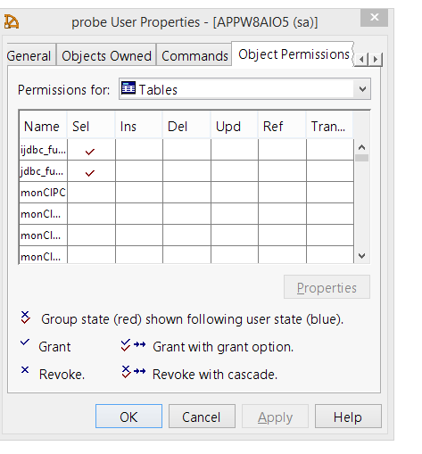- [プロパティ] ダイアログ ボックスの [権限] タブで、[パブリック権限] を選択し、[データベースの状態の表示] リストに移動して、対応する [付与] チェックボックスをオンにします。